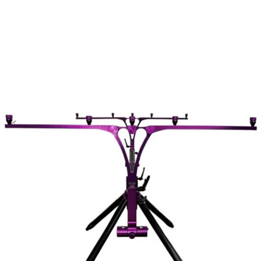 El rod pod está fabricado íntegramente en aluminio endurecido, un material ligero pero extremadamente resistente. Equipado con barras de buzz bars retráctiles que admiten 3 o 4 cañas, incluso con los carretes más grandes utilizados en la pesca de carpas. La distancia entre los postes es de 25 cm para 4 cañas o de 40 cm para 3 cañas. Los buzz bars están equipadas con conectores rápidos magnéticos. El rod pod puede extenderse hasta una distancia máxima de 160 cm entre buzz bars